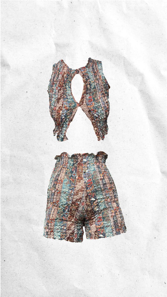 Sold out Sold outSHIRRED SHORTS (brown×green×blue)Regular price $120.00 CADRegular priceUnit price / per-