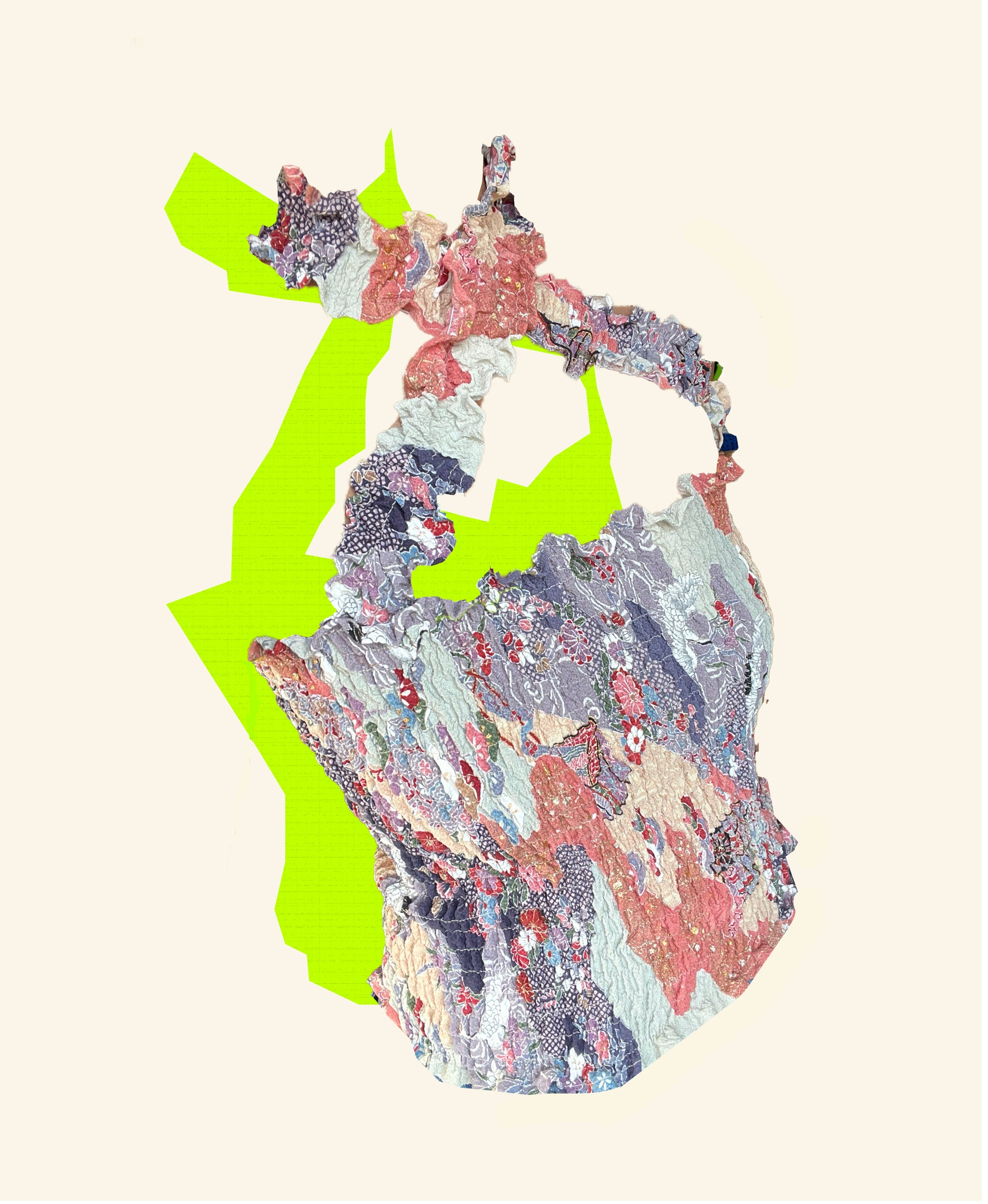 2WAYS UPCYCLED KIMONO CROSS NECK TOP <multi pastel color>