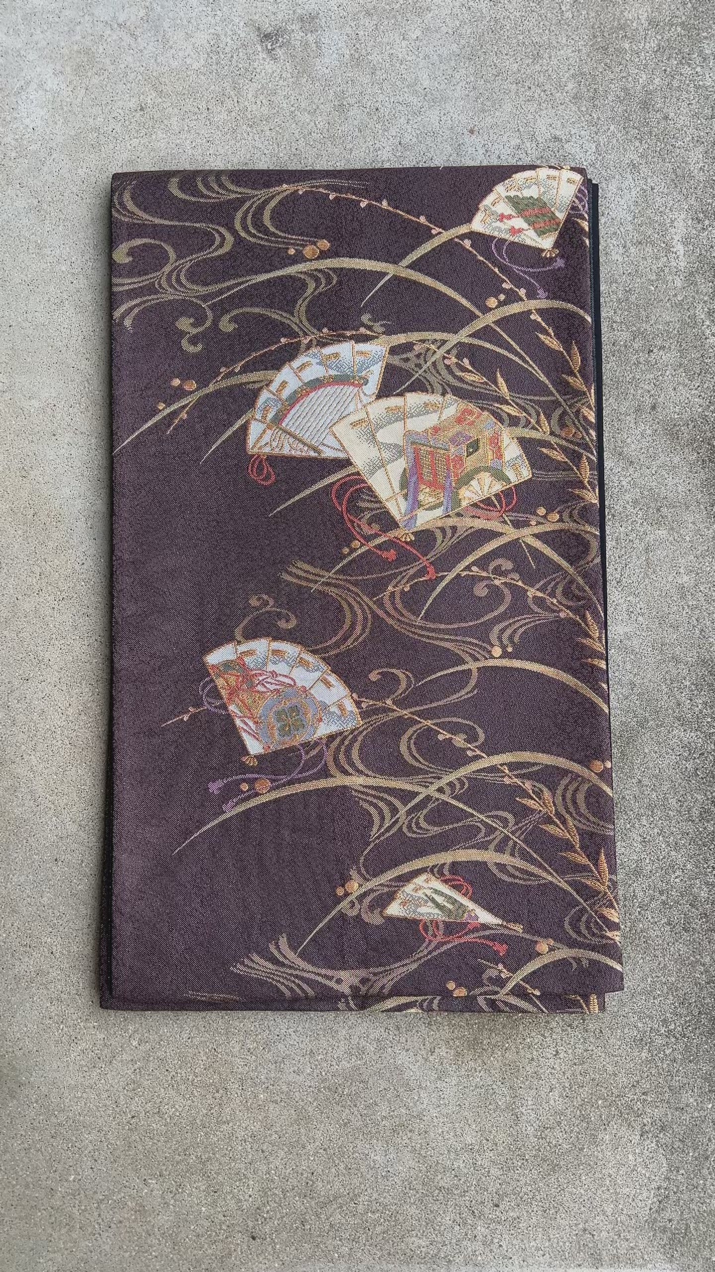 <FORTUNE COOKIE BAG (L) <dark maroon with japanese fan sensu > Upcycled from silk obi