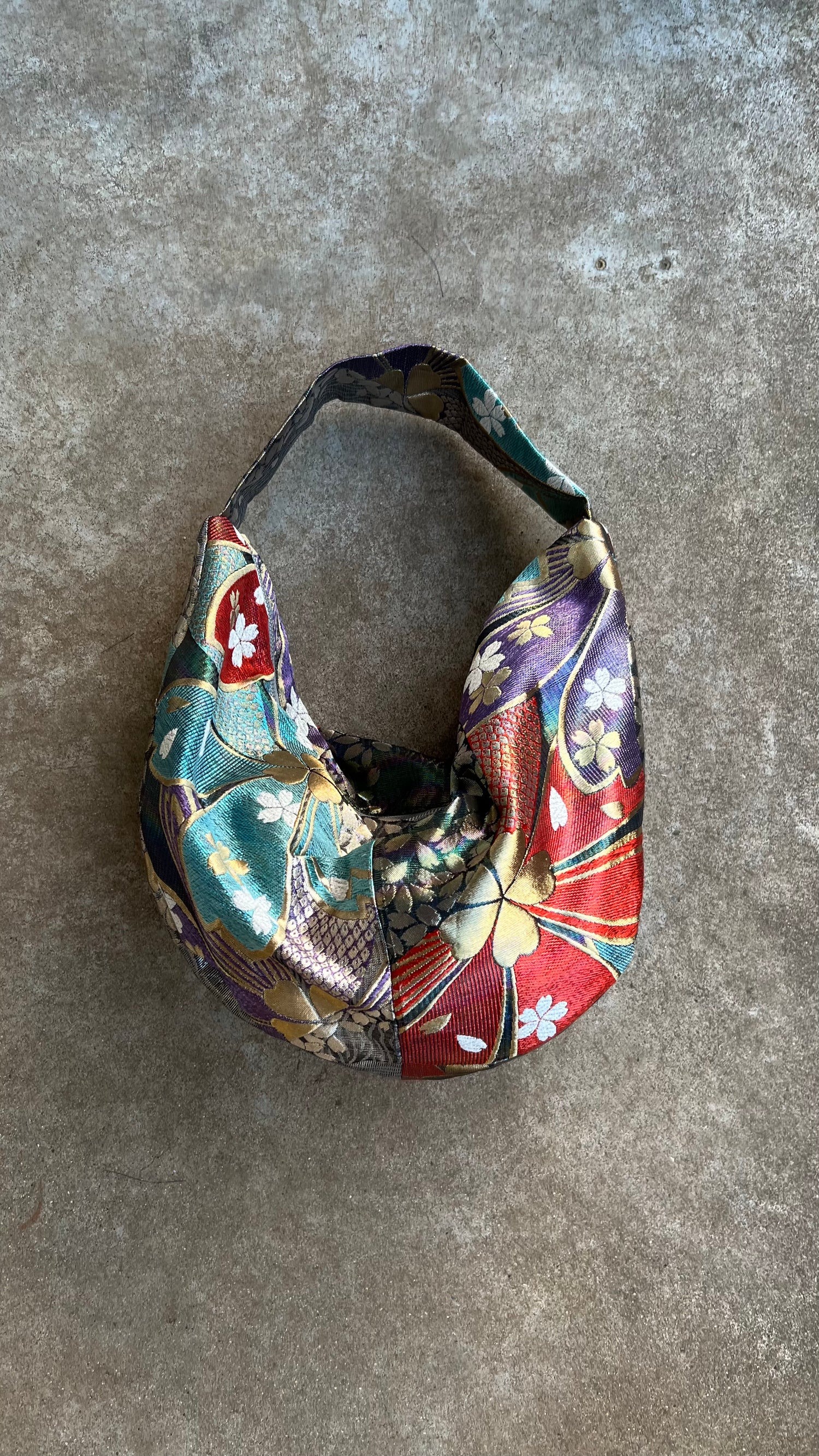 Carefully upcycled from second hand silk obi into wearable one of a kind bags