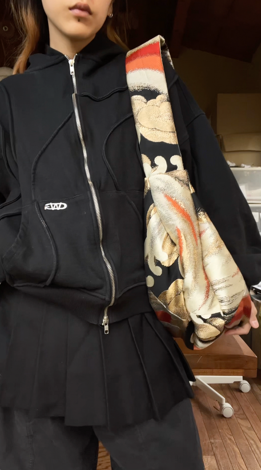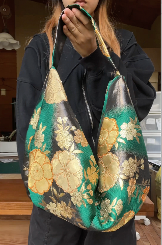 The FORTUNE COOKIE BAG has become one of the most beloved and recognizable pieces from LOOP STUDIO. Each bag is thoughtfully handcrafted by upcycling second-hand Japanese silk obi—traditional kimono sashes—giving new life to forgotten textiles while celebrating the beauty of Japanese traditional art. Perfect for those who value sustainable fashion, cultural heritage, and timeless design.