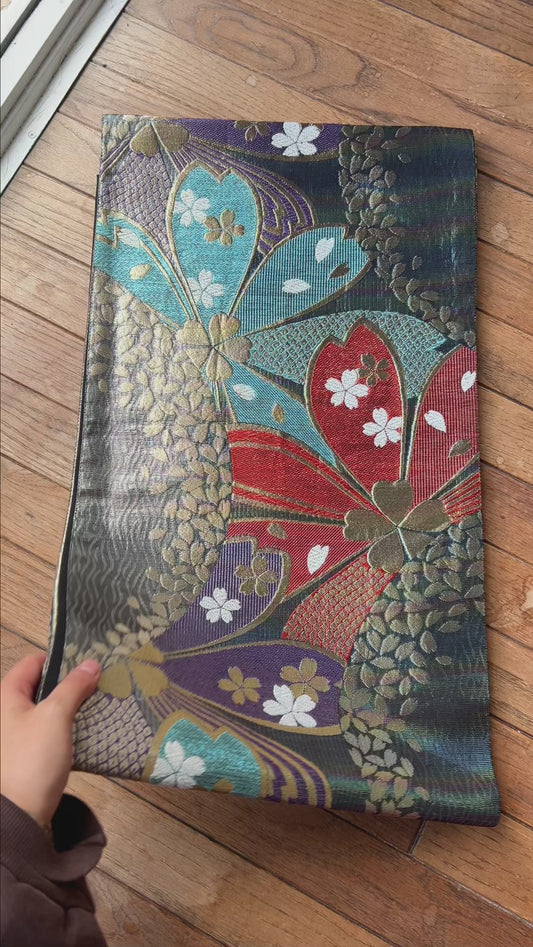 FORTUNE COOKIE BAG (S) <black multi color floral pattern > Upcycled from pre loved obi