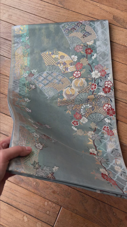 FORTUNE COOKIE BAG (S) <metallic green floral pattern > Upcycled from pre loved obi