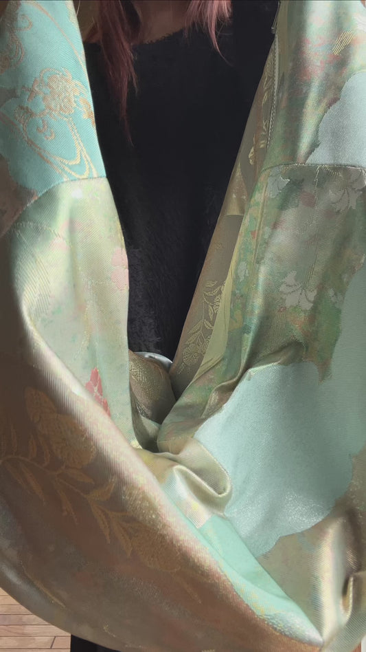 FORTUNE COOKIE BAG (S) <metallic light green wave pattern > Upcycled from pre loved obi