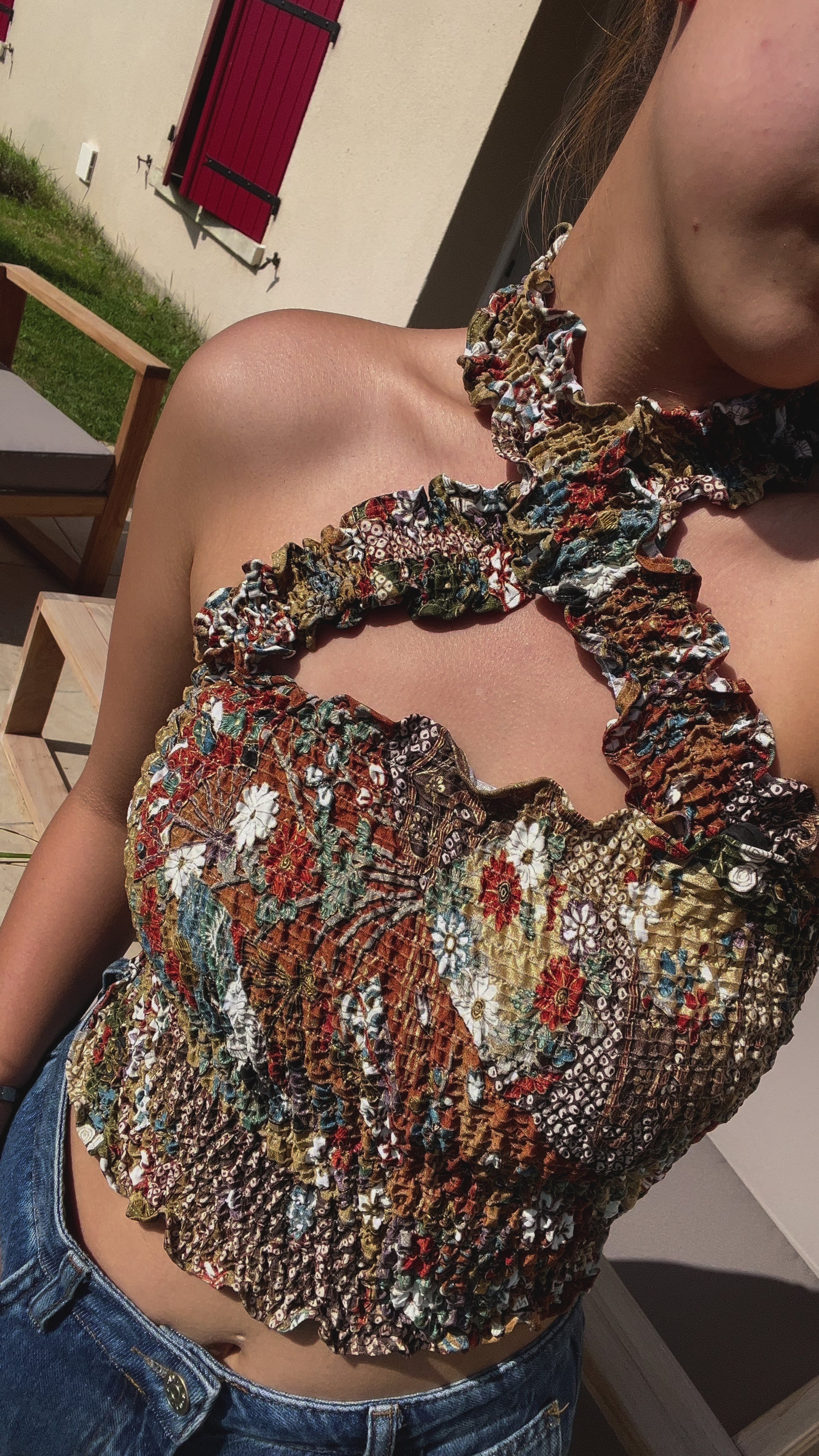 2WAYS UPCYLED KIMONO CROSS NECK TOP