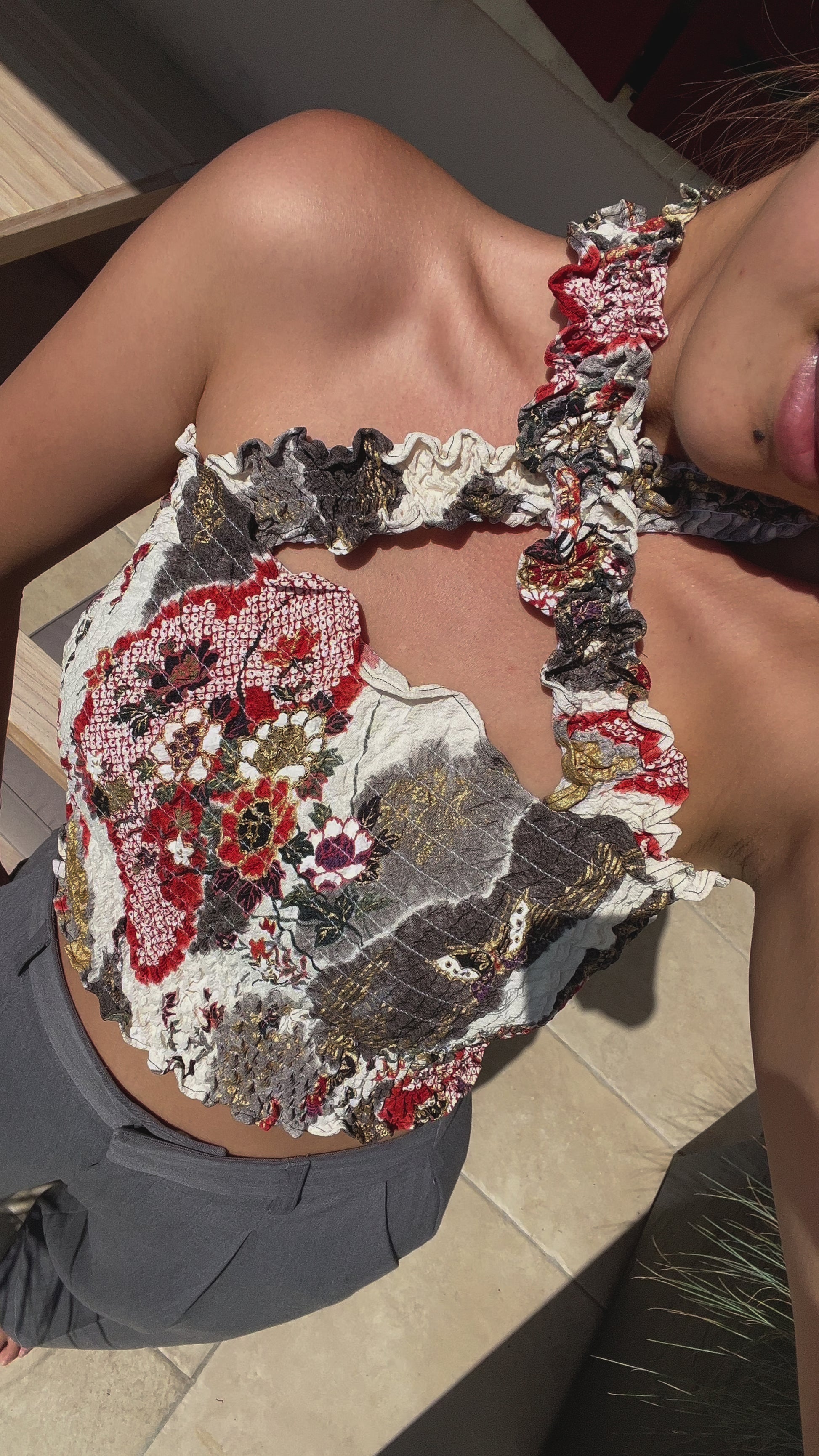 2WAYS UPCYLED KIMONO CROSS NECK TOP