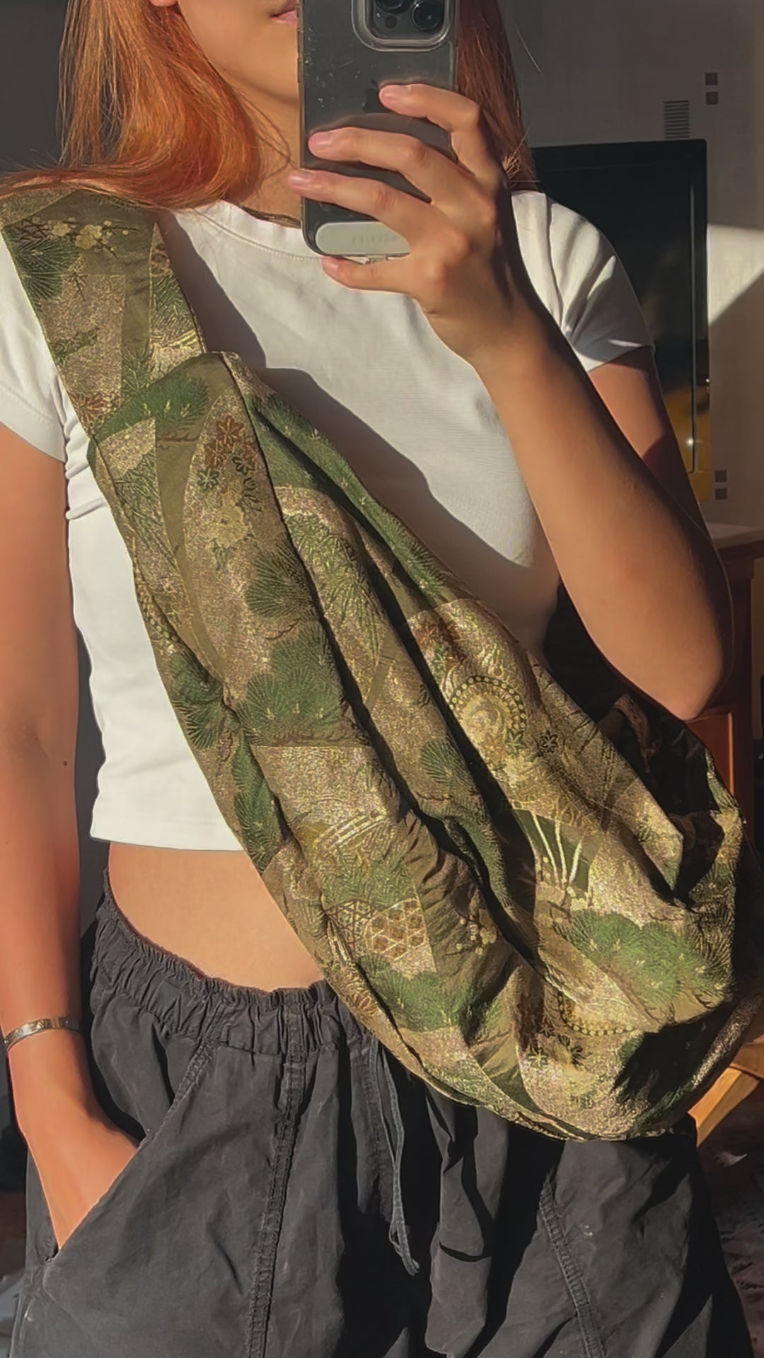 This product is upcycled from second hand obi, silk 100%