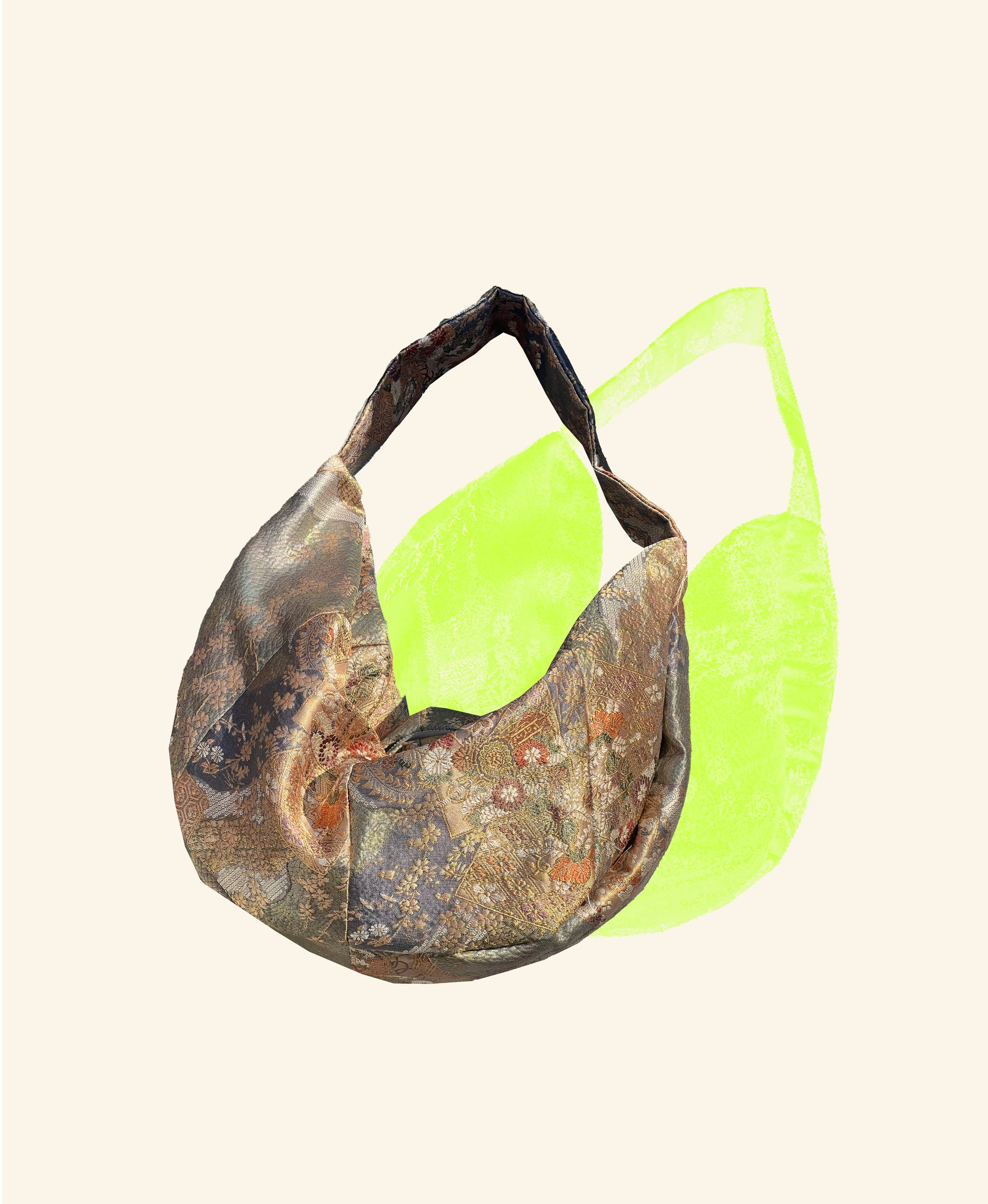 This bag is made from second hand silk obi, and while the material has been carefully tested for strength, excessive force or unusual use may cause damage.
