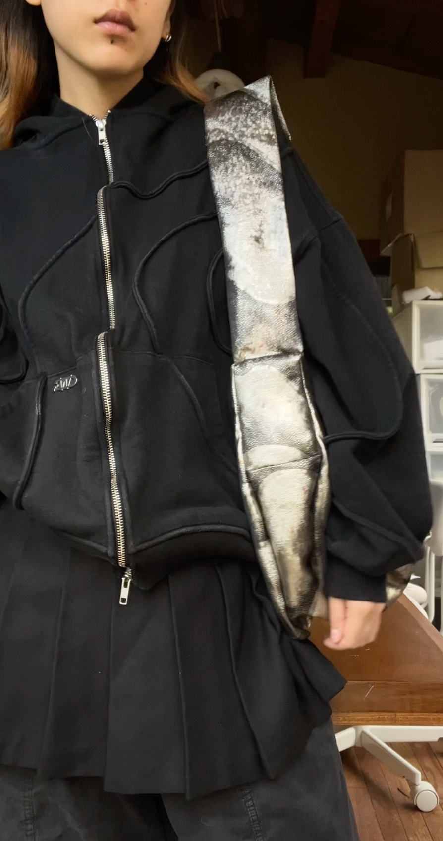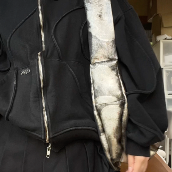 <FORTUNE COOKIE BAG (L) <black×silver with abstract pattern > Upcycled product