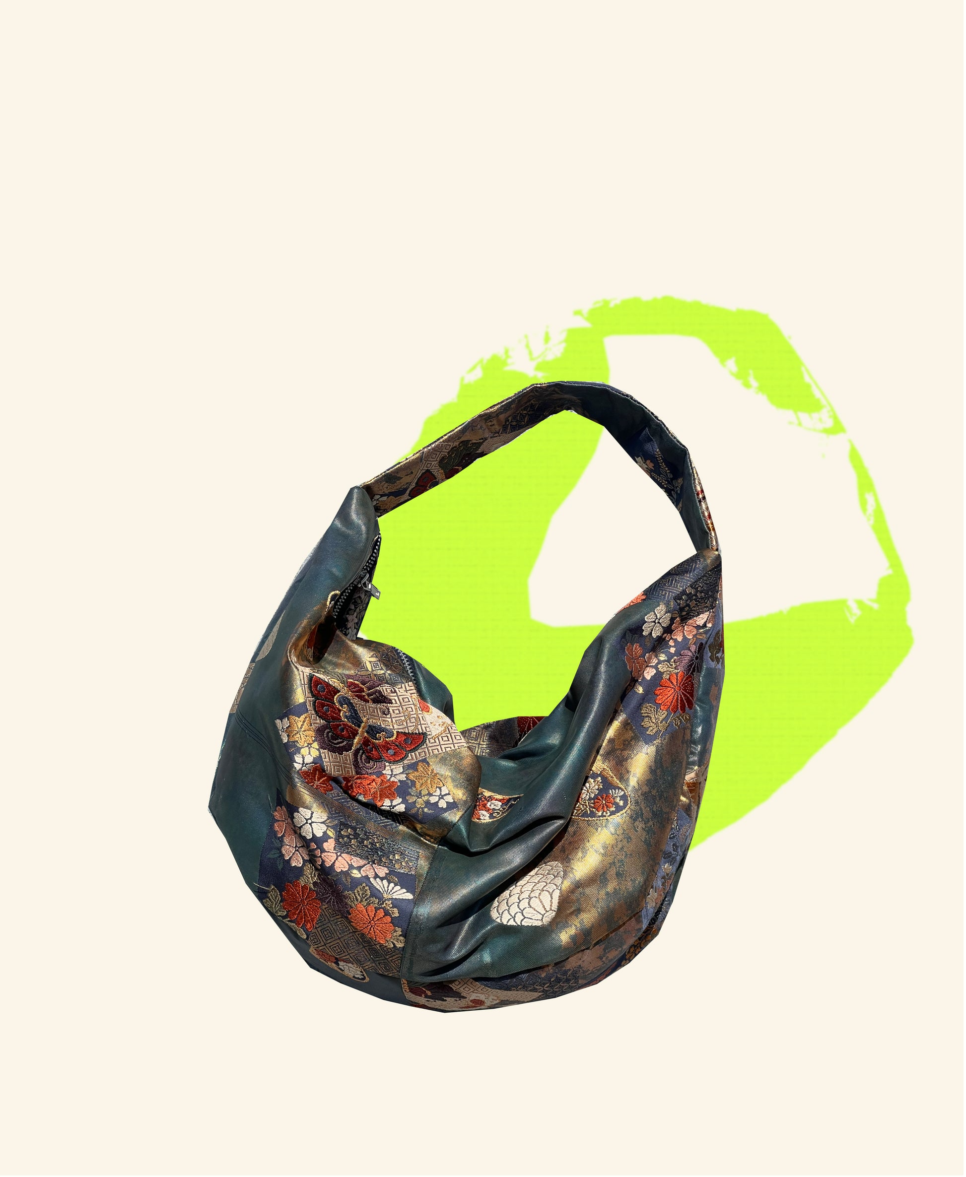 FORTUNE COOKIE BAG (S) <forest green shell&butterfly motifs> Upcycled from silk obi