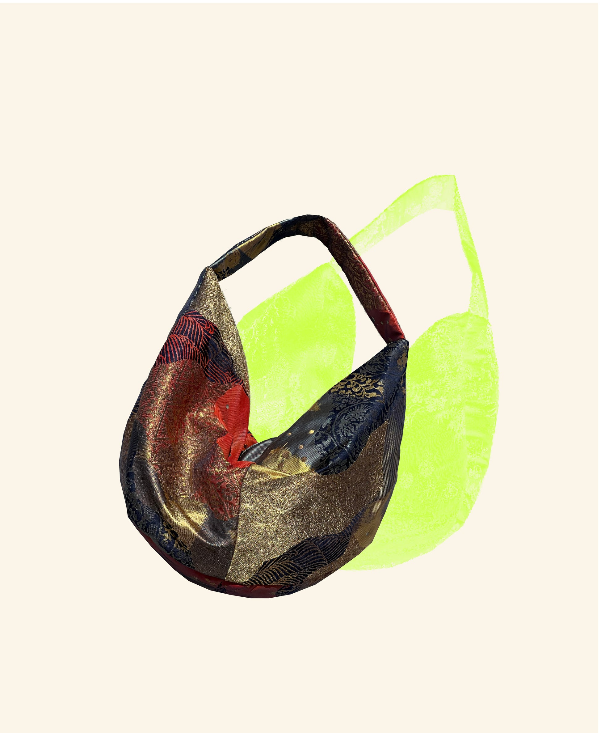 This bag is made from second hand silk obi, and while the material has been carefully tested for strength, excessive force or unusual use may cause damage.