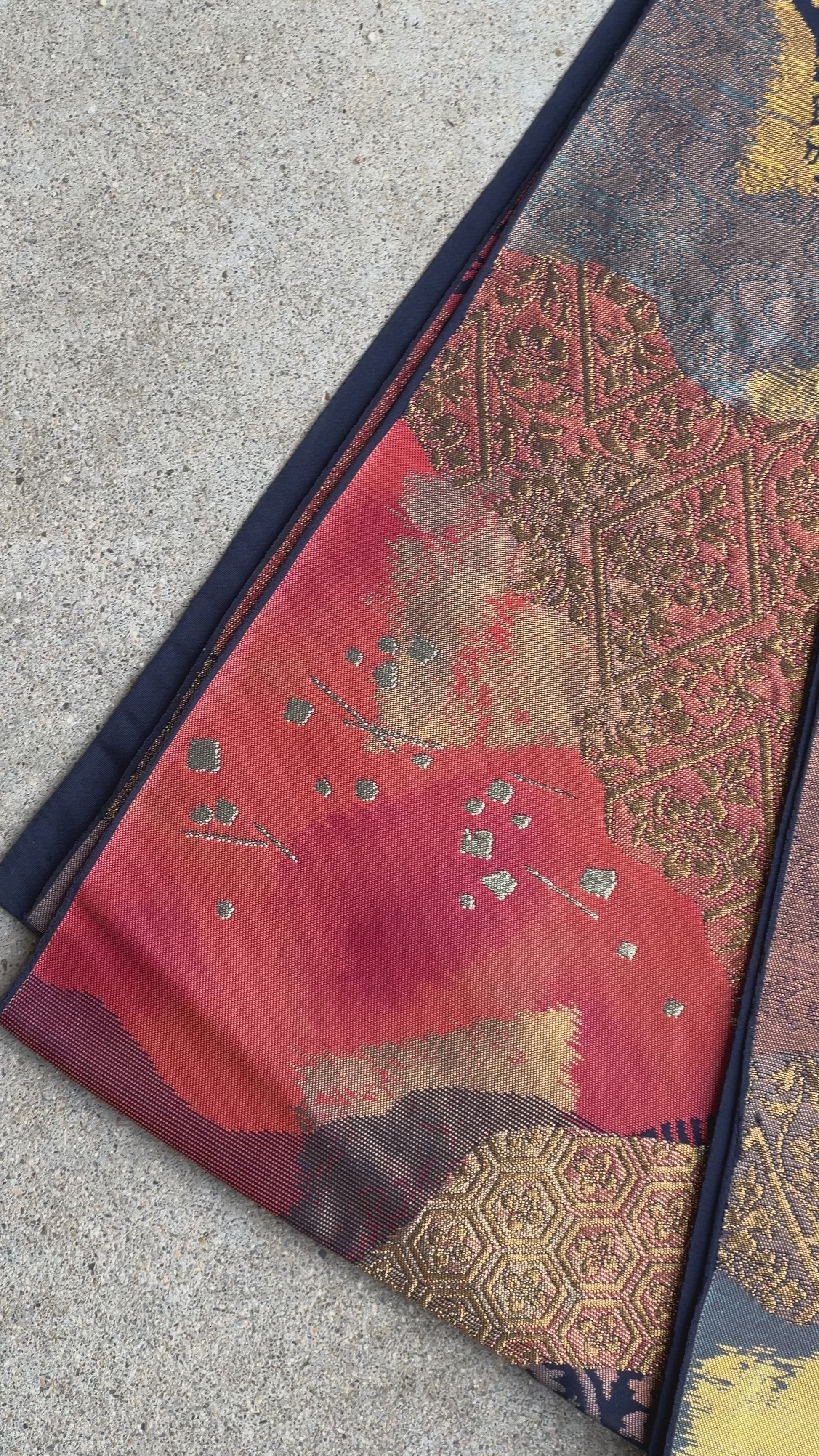 FORTUNE COOKIE BAG (S) <red × navy abstract motifs> Upcycled from silk obi