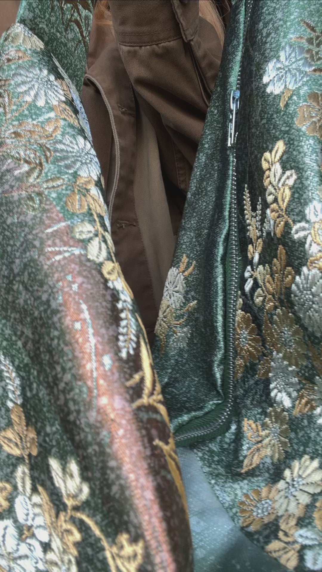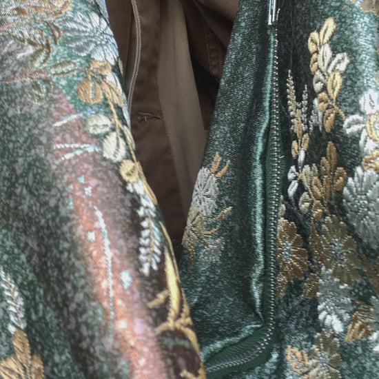 FORTUNE COOKIE BAG (S) <metallic green floral pattern> Upcycled from pre loved obi