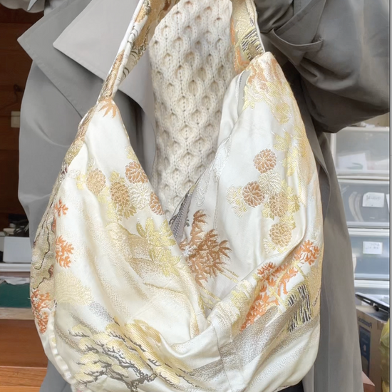This bag is made from second hand silk obi, and while the material has been carefully tested for strength, excessive force or unusual use may cause damage.