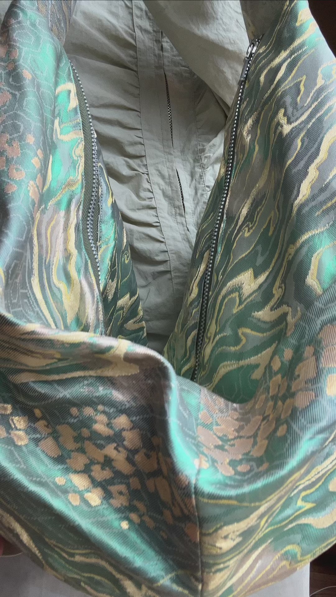 FORTUNE COOKIE BAG (S) <metallic light green wave pattern > Upcycled from pre loved obi