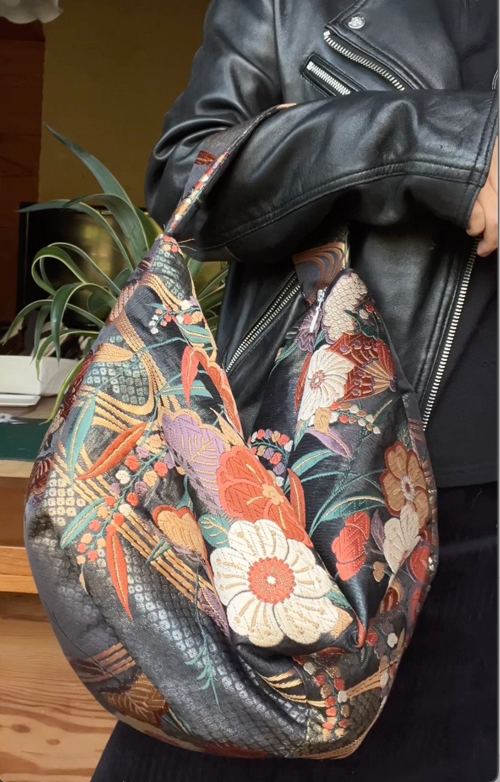 This bag is made from second hand silk obi, and while the material has been carefully tested for strength, excessive force or unusual use may cause damage.