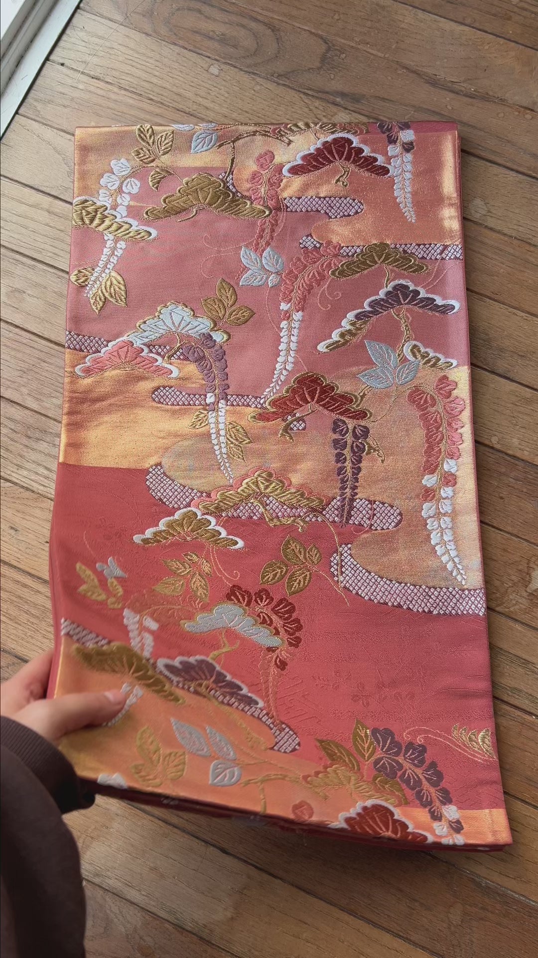 FORTUNE COOKIE BAG (S) <vermilion floral pattern> Upcycled from pre loved obi