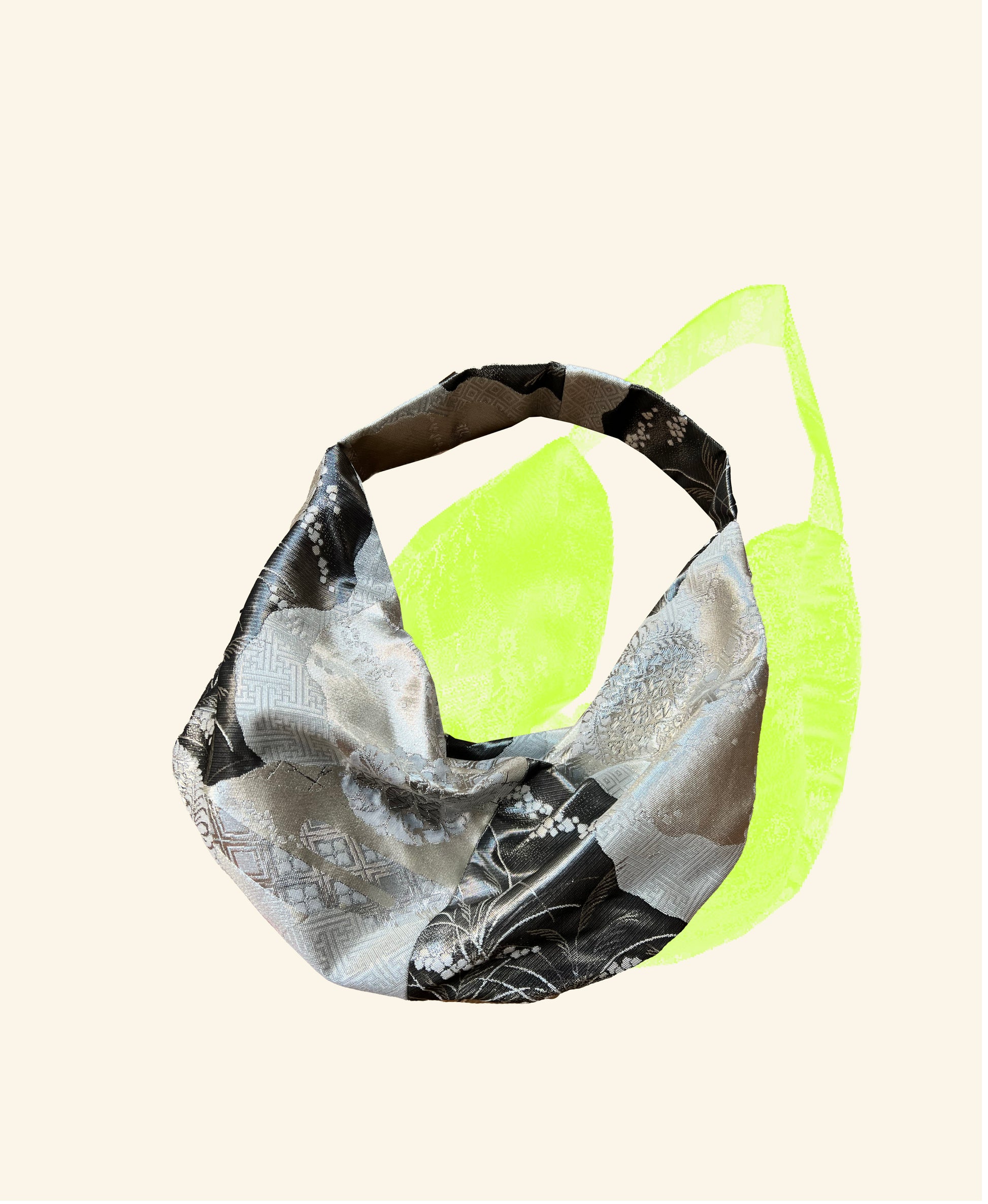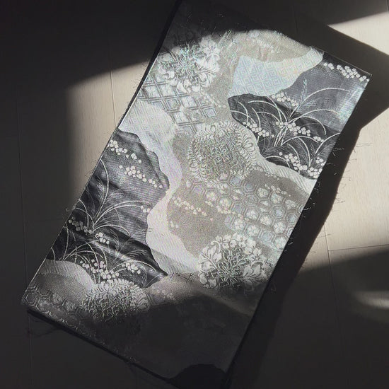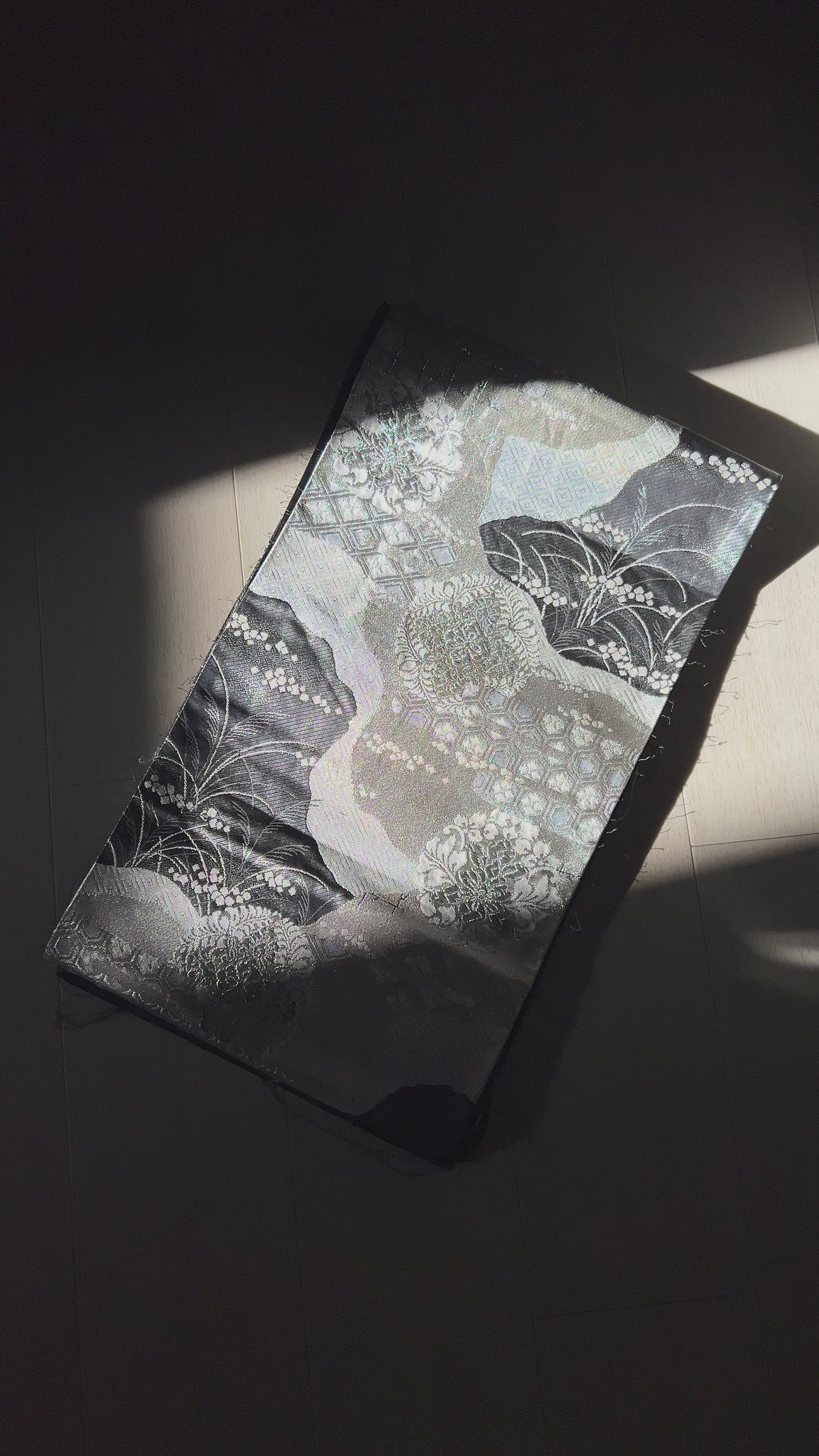 FORTUNE COOKIE BAG (S) <metallic silver×black multi flowers> Upcycled from silk obi