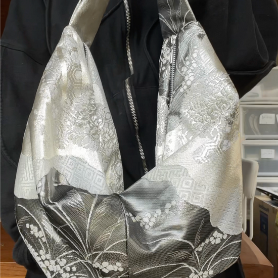 This bag is made from second hand silk obi, and while the material has been carefully tested for strength, excessive force or unusual use may cause damage.