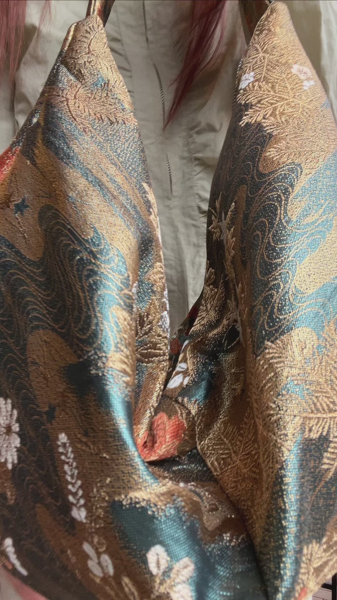 FORTUNE COOKIE BAG (S) <metallic green floral pattern > Upcycled from pre loved obi
