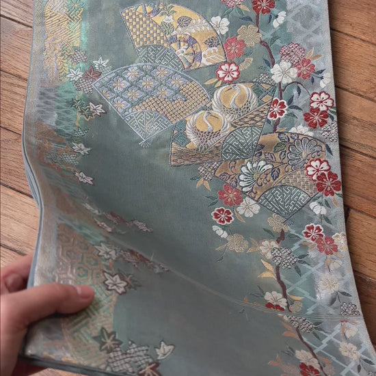 FORTUNE COOKIE BAG (S) <ash light green floral pattern > Upcycled from pre loved obi