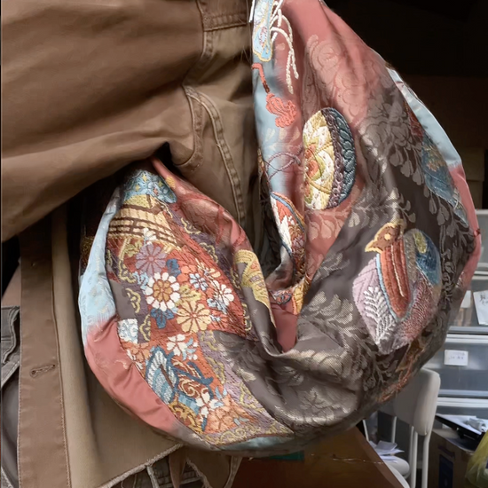 This bag is made from second hand silk obi, and while the material has been carefully tested for strength, excessive force or unusual use may cause damage.